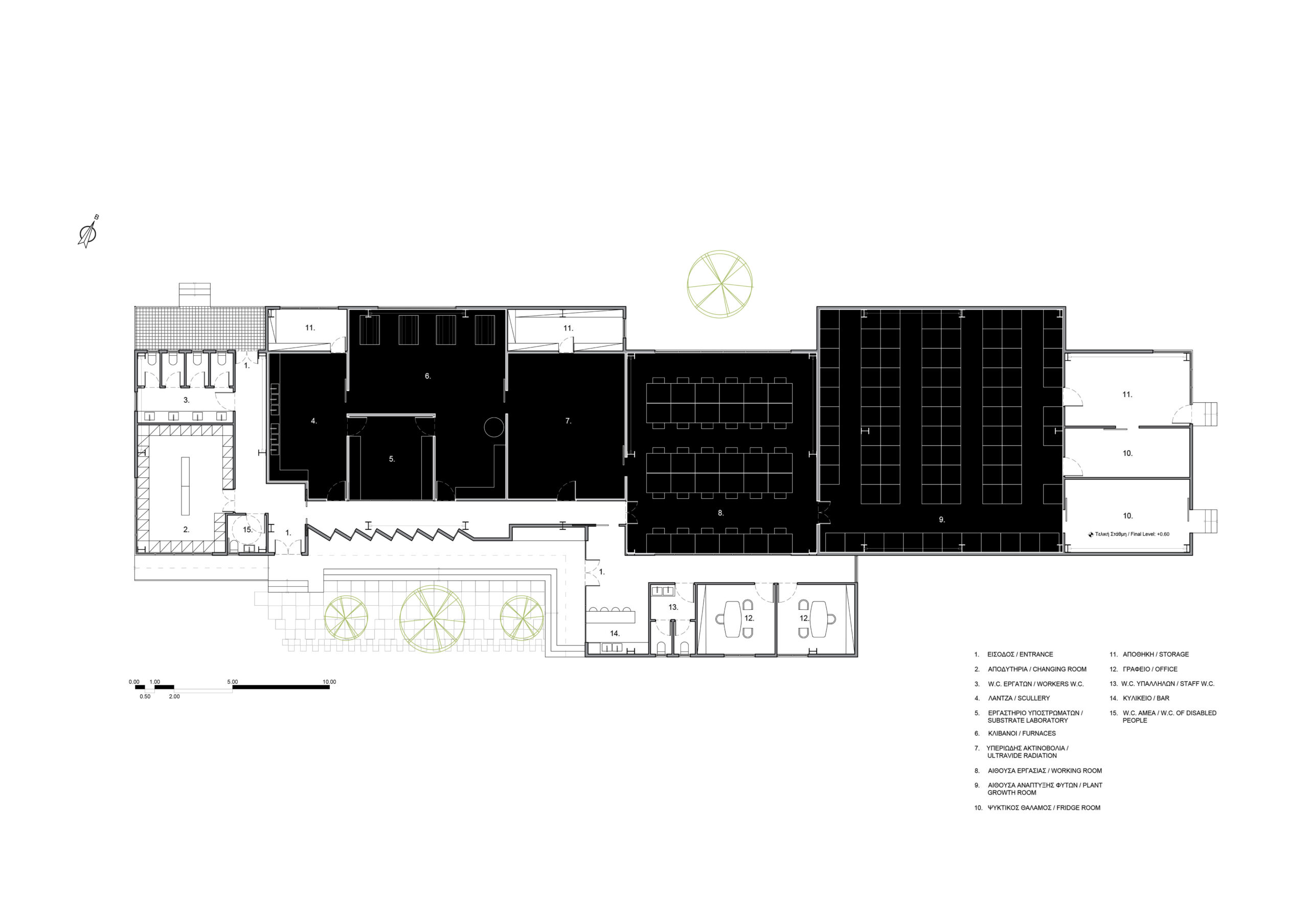 Εντός ενός αγροτεμαχίου, όπου βρίσκεται στην περιοχή “Θεριστιά” στον Δήμο Ζηρού, πρόκειται να ανεγερθεί ισόγειο γεωργικό κτήριο εμβαδού Ε= 707,05 τ.μ. Πρόκειται να διαθέτει όλους τους απαιτούμενους χώρους για την παραγωγή και αποθήκευση φυτικών προϊόντων. Πιο συγκεκριμένα το κτηριολογικό πρόγραμμα περιλαμβάνει τις αίθουσες προετοιμασίας όπως είναι ο χώρος καθαρισμού και αποστείρωσης των εργαλείων και σκευών, χώρος κλιβάνων, εργαστήριο υποστρωμάτων, αίθουσα υπερίωδους ακτινοβολίας καθώς και τους απαιτούμενους αποθηκευτικούς χώρους. Εν συνεχεία θα περιλαμβάνει τον κύριο χώρο εργασίας καθώς και την αίθουσα ανάπτυξης των φυτικών οργανισμών. Επιπροσθέτως διαθέτει δύο (2) ψυκτικούς θαλάμους και επιπλέον αποθήκη. Επιπλέον θα υπάρχουν διοικητικοί χώροι δύο γραφείων καθώς κυλικείο και χώροι W.C. Τέλος προβλέπεται χώρος αποδυτηρίων των εργαζομένων, ανδρών και γυναικών. Όλοι οι χώροι προβλέπονται βάση της μελέτης να είναι προσβάσιμοι για ΑΜΕΑ με την κατάλληλη ράμπα ανάβασης καθώς και αντίστοιχο χώρο W.C.