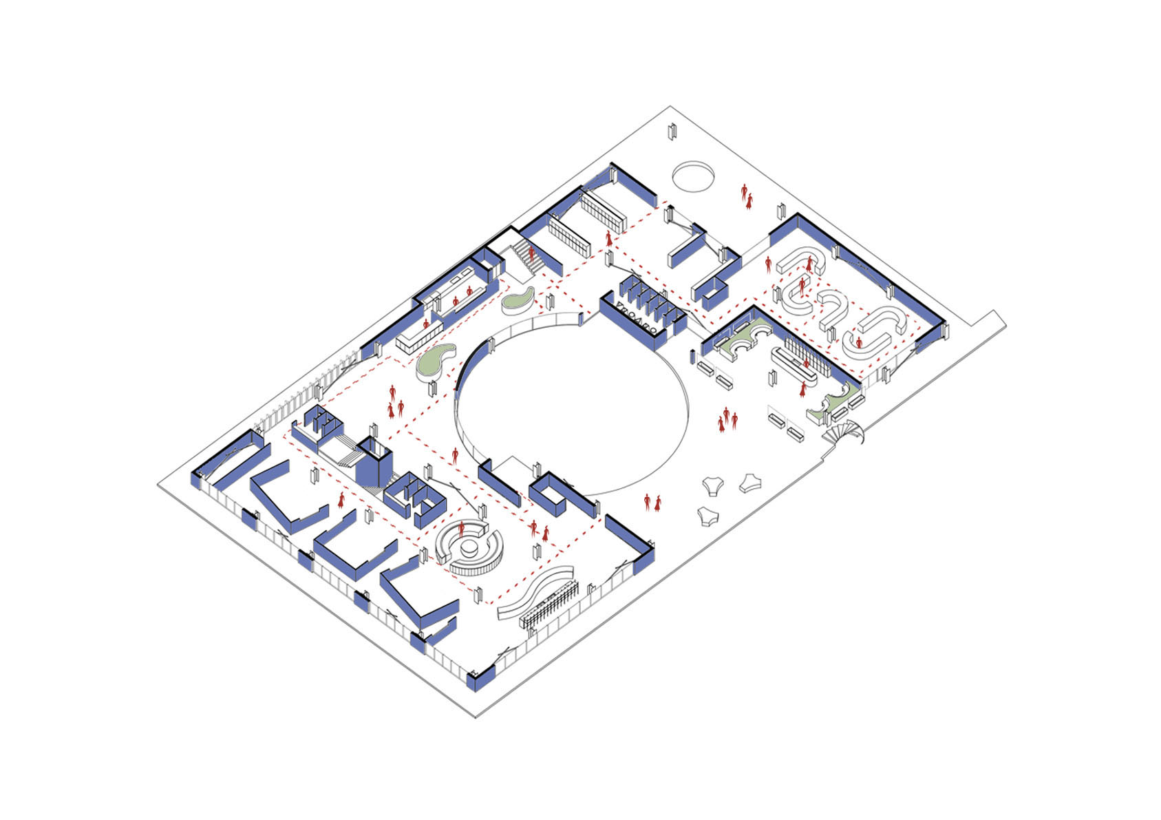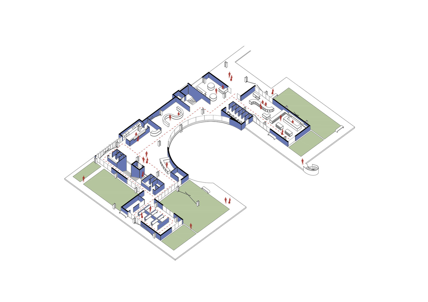 Για να καθορίσουμε τις συνθετικές αρχές που ακολουθήσαμε οφείλαμε να ανατρέξουμε στο θεωρητικό έργο του Φινλανδού αρχιτέκτονα και διανοητή Juhani Pallasmaa. Μέσα από το εμβληματικό του έργο με τίτλο: «Τα μάτια του δέρματος, η αρχιτεκτονική και οι αισθήσεις» μπορεί κανείς να αναγνωρίσει τις αρχές που καθόρισαν την συνθετική επιλογή. Πιο συγκεκριμένα το πόρισμα αυτού του σύντομου κειμένου για την αρχιτεκτονική, καταδεικνύει την σημασία της συμμετοχής όλων των αισθήσεων για την πλήρη βιωματική εμπειρία ενός κτιστού χώρου. Έτσι και στην δική μας πρόταση η όραση δεν αποτελεί τον ηγεμονικό παράγοντα κατανόησής της. Αλλά με την χρήση της αφής των υλικών της και της ακοής των ηχοχρωμάτων που παράγονται στους χώρους ανάλογα την χρήση τους, δίνει μία πλήρη εμπειρία στο σύνολό της.