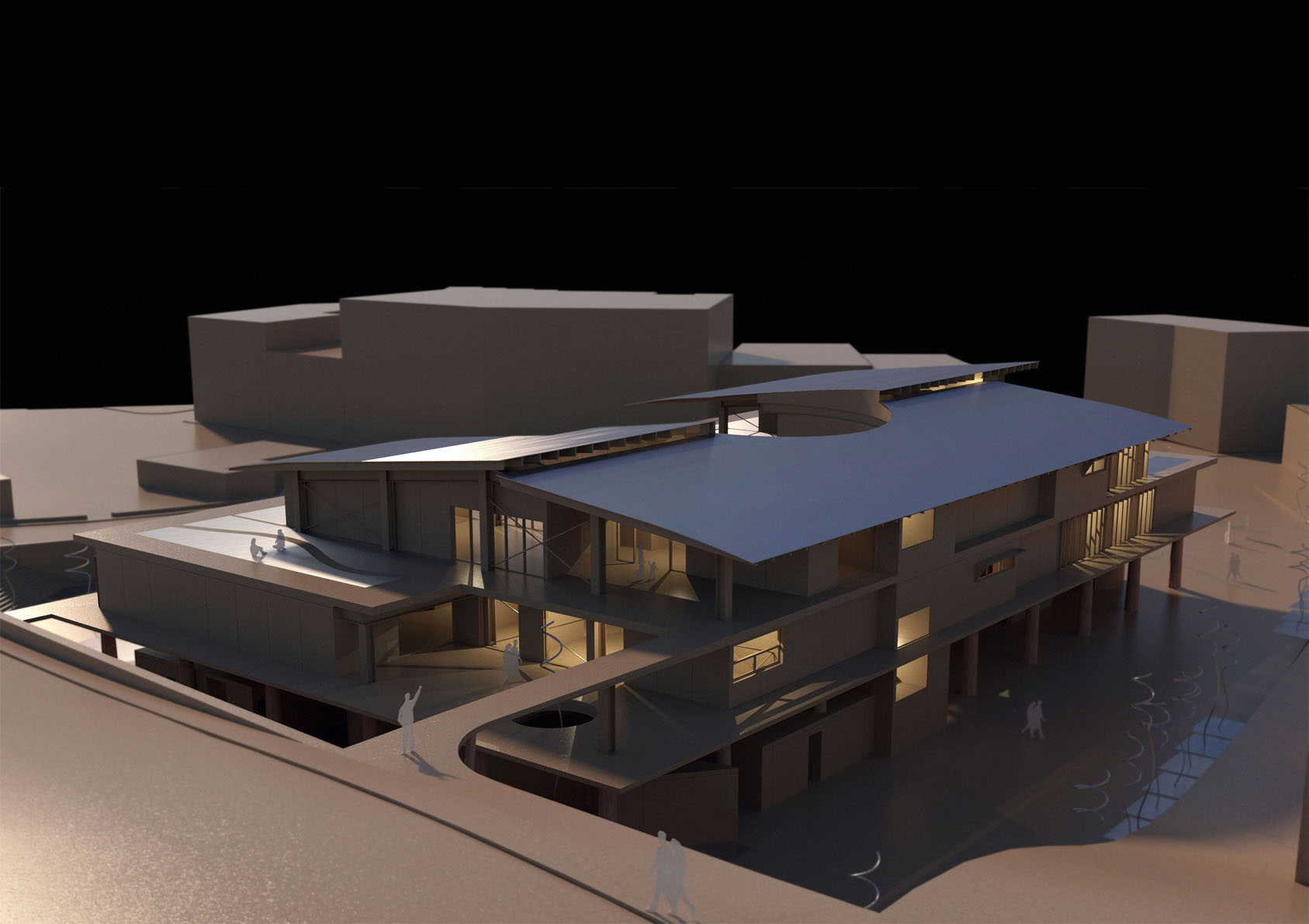 Η σύνθεση της σχεδιαστικής πρότασης προέκυψε από τον συνδυασμό δύο βασικών κατευθυντήριων προσεγγίσεων· αυτή της δημιουργίας ενός πόλου στον αστικό ιστό και του εξωραϊσμού της ζωής της πόλης. Πιο συγκεκριμένα στόχο αποτέλεσε η δημιουργία ενός κτιρίου εύκολα αναγνωρίσιμο και προσβάσιμο για όλους τους πολίτες, στο κέντρο της πόλης. Καθώς και η δημιουργία ενός πνεύμονα πρασίνου και εκτόνωση για την περιοχή.